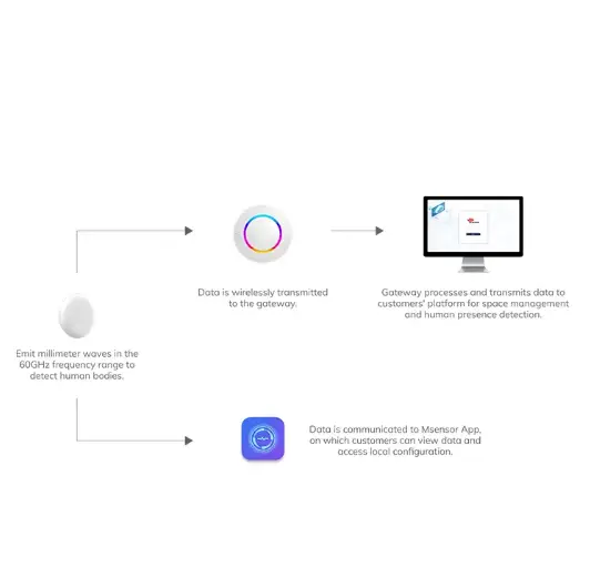 MSR01 Millimeter Wave Radar Sensor is a Bluetooth-enabled sensor operating in the 60GHz frequency band. The version, MSR01-A is designed for human presence detection. This sensor can detects human presence and provides accurate personnel flow statistics. It exhibits remarkable sensitivity, superior algorithm performance, and an exceptionally high level of accuracy. It incorporates a self-learning function that allows it to gain insights into environmental conditions, and identify and eliminate sources of interference.